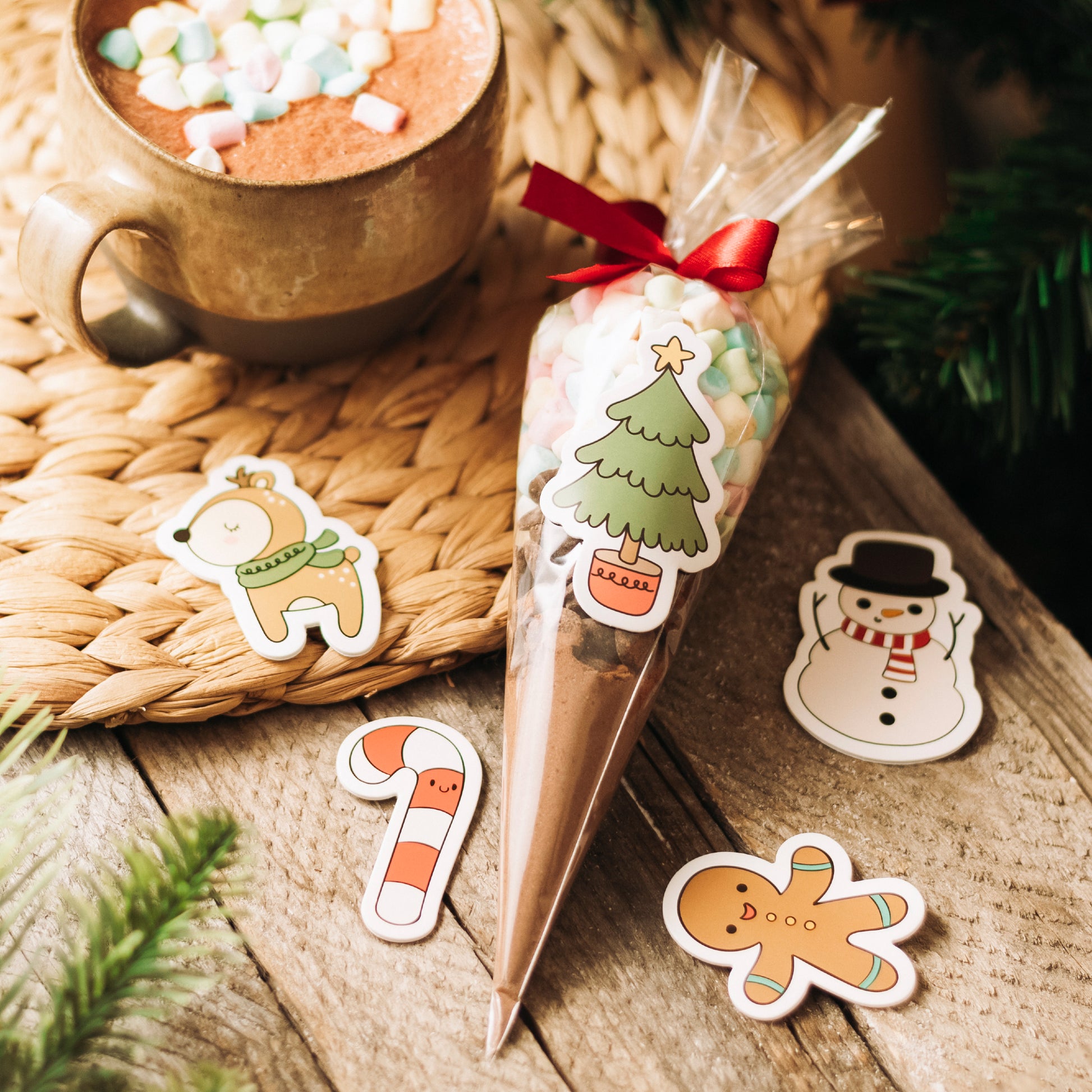 Pēc izvēles iespējams pievienot svētku tēmas uzlīmes (nav iespējams izvēlēties konkrēti, attēlā redzamie ir tikai uzskatāmi piemēri)