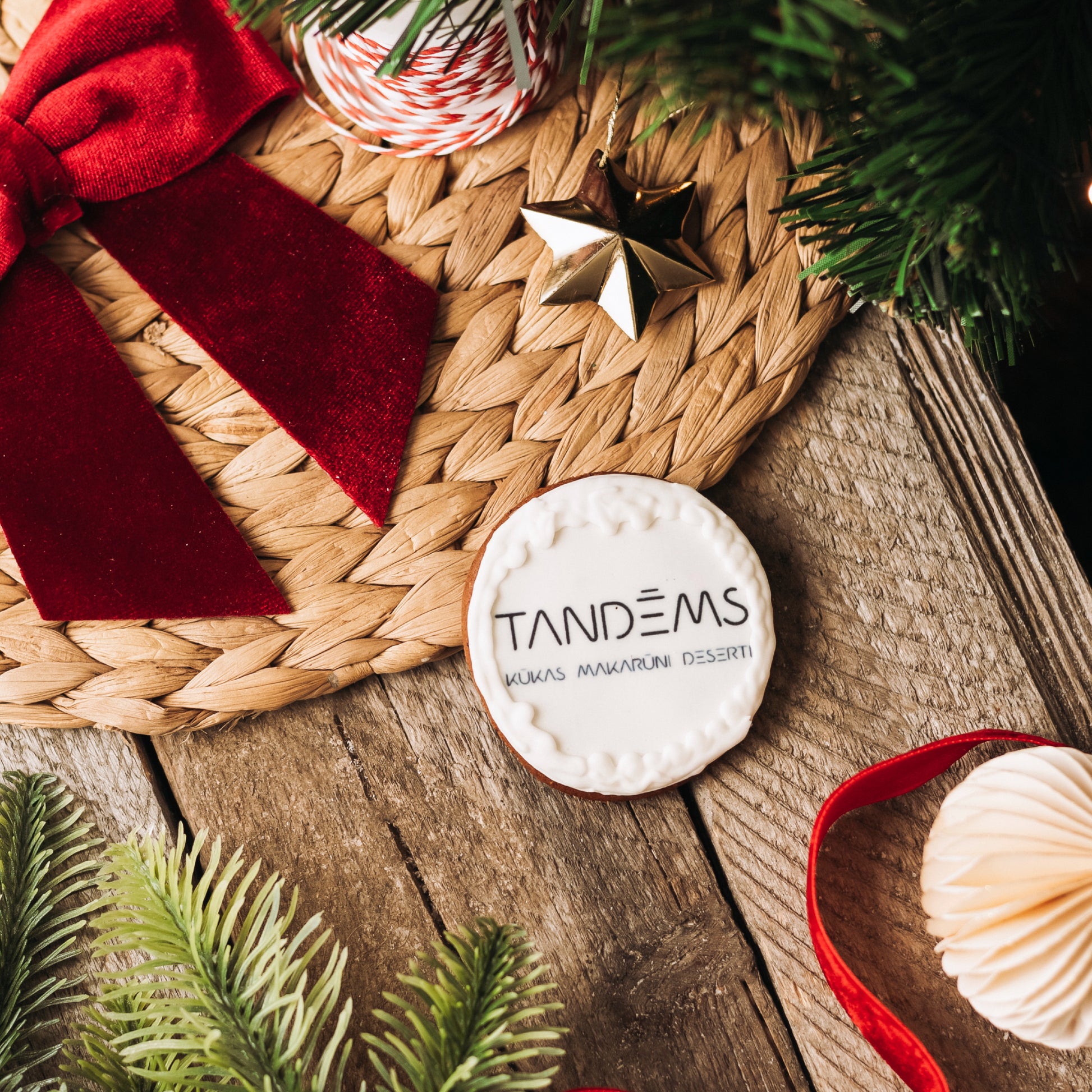 Piparkūka ar jūsu izvēlētu logo (ēdamais foto) , iesaiņots maisiņā ar lentīti! Iesūti logo epastā: tandemsinfo@gmail.com.